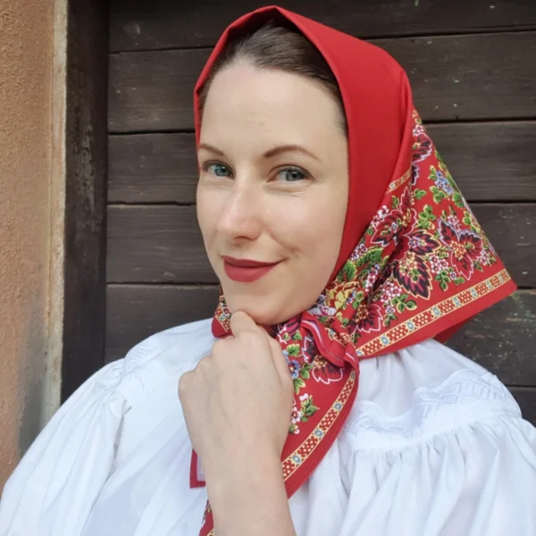 Někdy v roce 2017 jsem se rozhodla, že budu obnovovat staré motivy a pokusím se třeba i vytvořit nějaké nové. Trvalo mi mnoho let, než jsem našla digitální tiskárnu, která je schopná tisknout pěknou červenou barvou na bavlnu v kvalitě, jakou jsem požadovala. Od té doby pro vás vektorizuji staré motivy a tvořím nové kousky, aby se vrátila diverzita šátků, jako byla naposled před válkou.