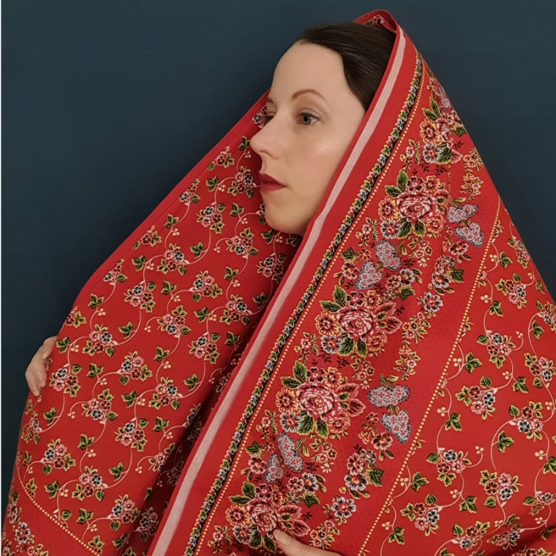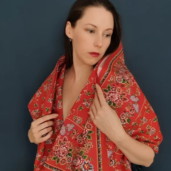 Vybírala jsem dlouho a pečlivě – jako opravdu. Tisk je opravdu krásně červený, bez hnědých tónů. Milimetrové (do 3mm) nedotisky nejsou důvod k reklamaci, pokud se vám vůbec povede je tam najít. Šátek můžete vyprat v ruce. Pokud je to opravdu nutné. Nedávejte ho do sušičky a vůbec s ním za mokra zacházejte velmi jemně. Digitální tisk je náchylný k oděru!! Nepoužívejte bělidla ani jiné prací prostředky na bílé prádlo. Bohatě stačí gel na barevné. Nejlépe šátek perte vzácně. Další užitečné rady si můžete přečíst v článku ZDE.